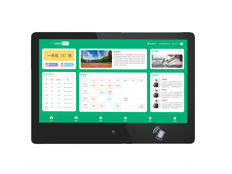 1. 整機設計:采用窄邊框圓角設計,防止學生意外撞傷、便于安裝使用。 2. 機器采用內置天線設計,無任何天線外露。 3. 采用21.5英寸電容顯示屏,支持10點觸控,屏幕分辨率≥1920*1080,顯示比例16:9,面板亮度:≥350cd/cm2(亮度要求提供第三方檢測報告)。 4. 采用瑞芯微 RK3288 芯片,CPU1.8GHz主頻;系統運行內存不低于2G,存儲容量不低于8G;具備4K超高清解碼;高性能、低功耗 CPU平臺支